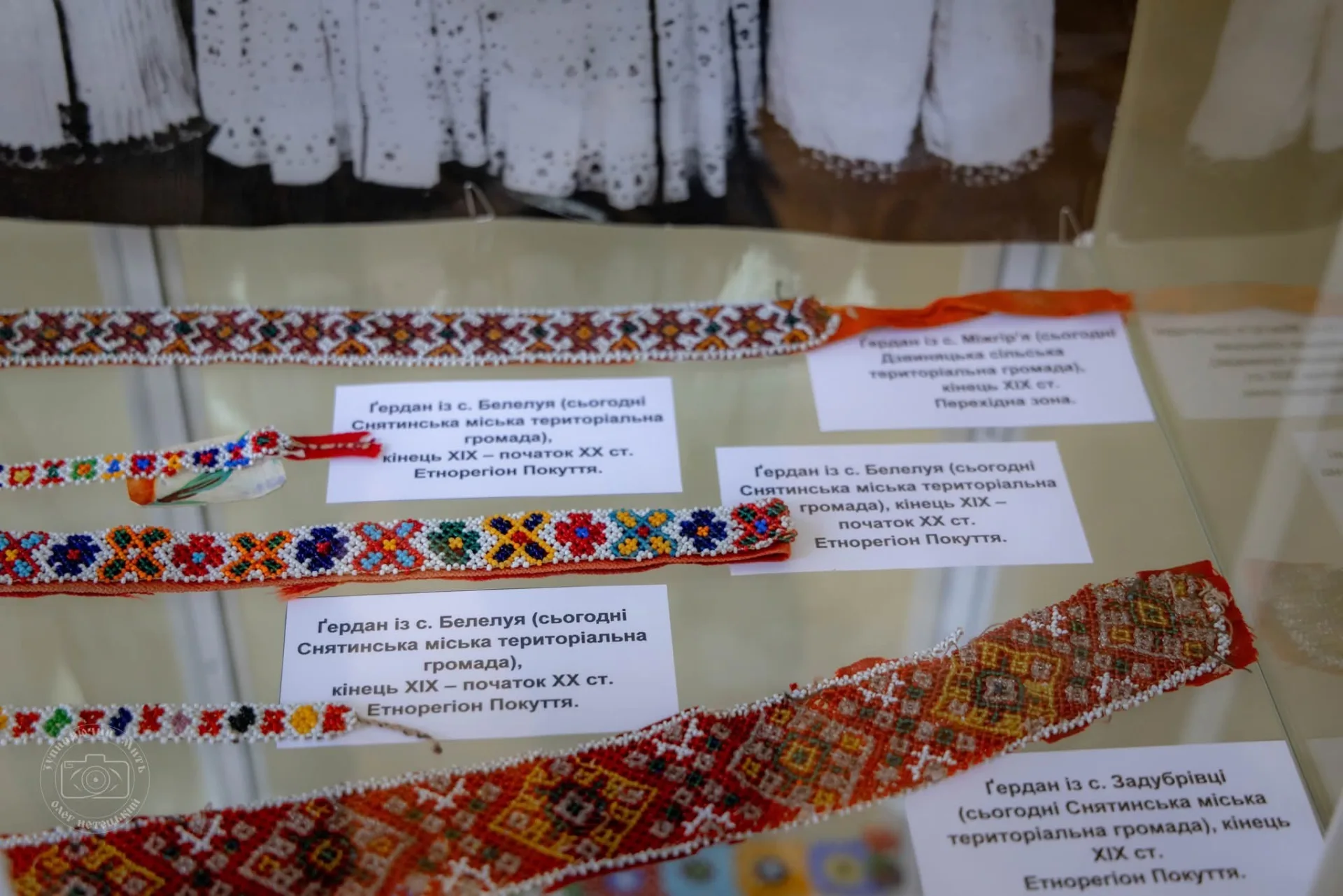 У спеціально придбаних пересувних вітринах представлено 48 традиційних бісерних прикрас ХІХ — середини ХХ ст. з чотирьох етнографічних районів Івано-Франківщини.